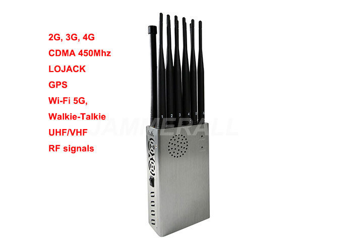 De alle-in-Één Stoorzender van het ontwerp draagbare draadloze signaal, 12 banden die allerlei Android-telefoons, Tabletten, Smartphones blokkeren, iPhones, Winst telefoneert enz. die 2G, 3G, 4G, en CDMA 450Mhz, Blok LOJACK GPS, WiFi 5G, Walkie-talkie UHF/VHF en rf-Signaalen als 315, 433, 868 gebruiken.