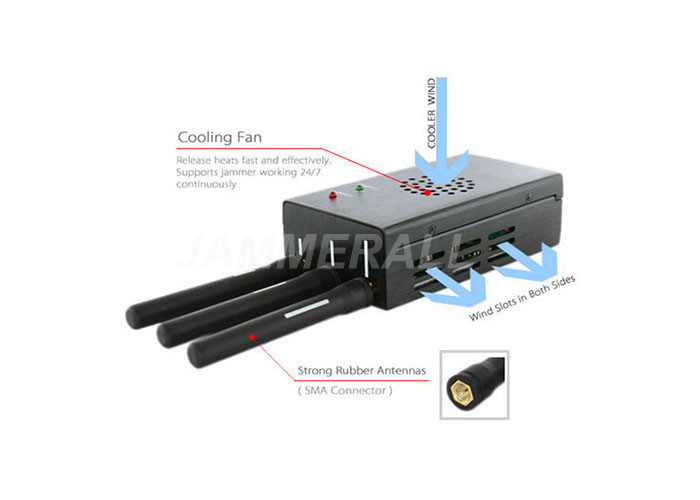 Dit is krachtig en draagbaar GPS en mobiele een telefoonstoorzender. Het kan zijn overal draagt en het niet alleen blokkeert de Signaalen van CDMA 851MHz-894MHz), GSM (925MHz-960MHz), DCS (1805MHz-1880MHz) en PCs (1930MHz-1990 Mhz), maar ook jam signaal het van GPS (1500MHz-1600MHz). De het blokkeren waaierstraal voor GPS is 15-20 meters en voor mobiele telefoon is 5-10 meters. Met de Ni-Ionenbatterij van DC8.4V/2600mA/h, is de ononderbroken gebruikende tijd rond 90 minuten. Ook kunt u in om het even welke plaats met AC lader belasten en last in uw auto met autolader.