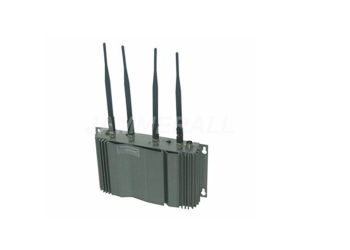 Bekijk deze mobiele telefoonstoorzender, sterk hoofdlichaam met vier slanke antennes, die de signalen van mobiele telefoon zoals GSM, CDMA, DCS, 3G kunnen effectief blokkeren.